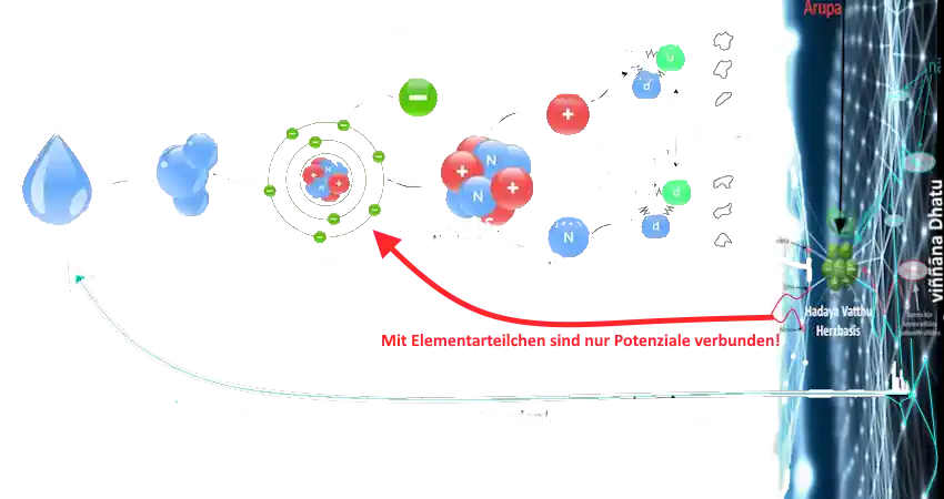 Jedes Elementarteilchen unterliegt einem Selektionsprinzip, das in pañcakkhandha verankert ist – konkret in der namagotta des nāma loka (mentale Welt), auf der grundlegenden Ebene der viññāṇa dhātu (Bewusstseinsgrundlage). Jedem raumzeitlichen Ereignis – sei es Masse, messbares Elementarteilchen oder Licht – sind bestimmte Aktivitätsmuster zugeordnet. Das bedeutet, dass jedes Elementarteilchen, auch auf subatomarer Ebene oder darunter, eine Komponente innerhalb des pañcakkhandha des nāma loka besitzt. Diese Komponente ist jedoch nicht materieller Natur, sondern eher ideell – vergleichbar mit einem immateriellen Strukturprinzip. Materie bzw. rūpa stellt demnach einen dynamischen Strukturfluss dar, dessen Grundlage eine elektromagnetisch anmutende Bewusstseinsstruktur bildet. Ohne ein solches immaterielles Abbild gäbe es nur „leeren Raum“.